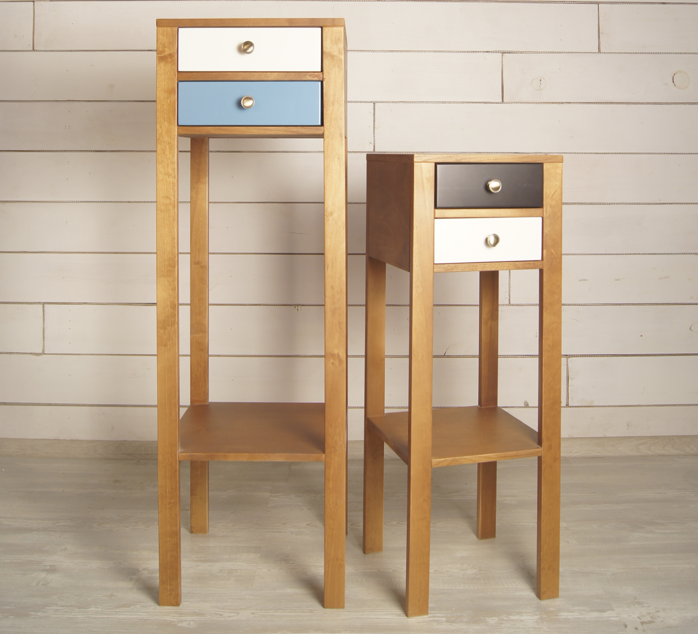Деревянная низкая консоль "Aquarelle", выполненная в стиле поп-арт, невероятно универсальна, она станет отличным решением как для Ваших комнатных растений, так и может послужить оригинальной этажеркой в прихожей, в ящички которой сможете поместить все необходимые мелочи.