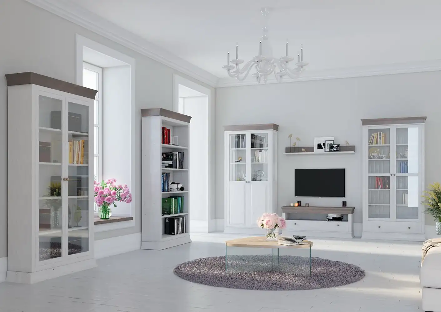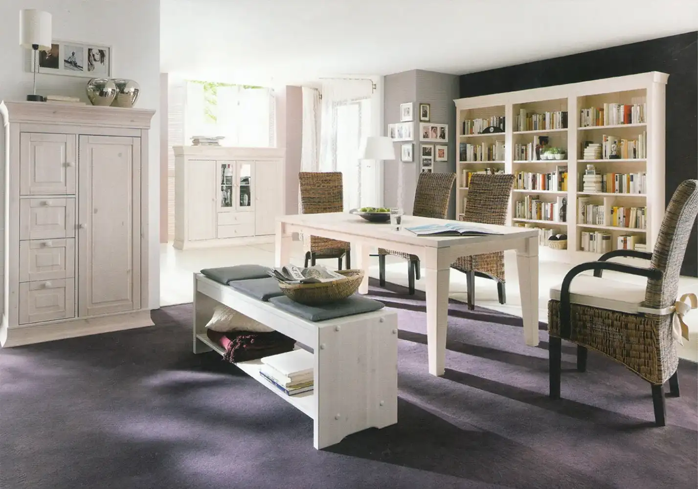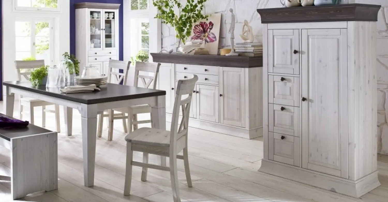 Мебель для кухни, гостиной, спальни и прихожей в лаконичном скандинавском стиле. В коллекцию входят комоды, буфеты, стеллажи, тумбы для ТВ, скамьи для прихожей и другие предметы. Предлагается несколько цветовых вариантов: «белый воск», «антик», «колониал», «серый».