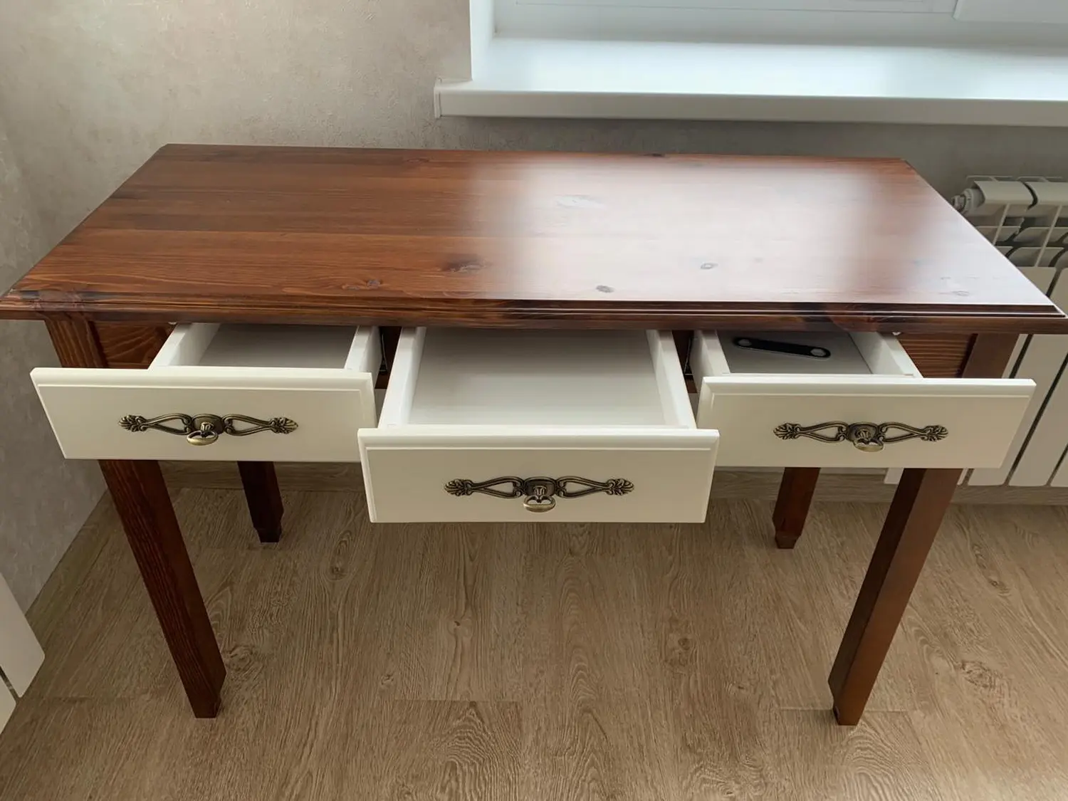Расположенные под столешницей ящики можно использовать для хранения косметических средств, парфюмерии и аксессуаров.