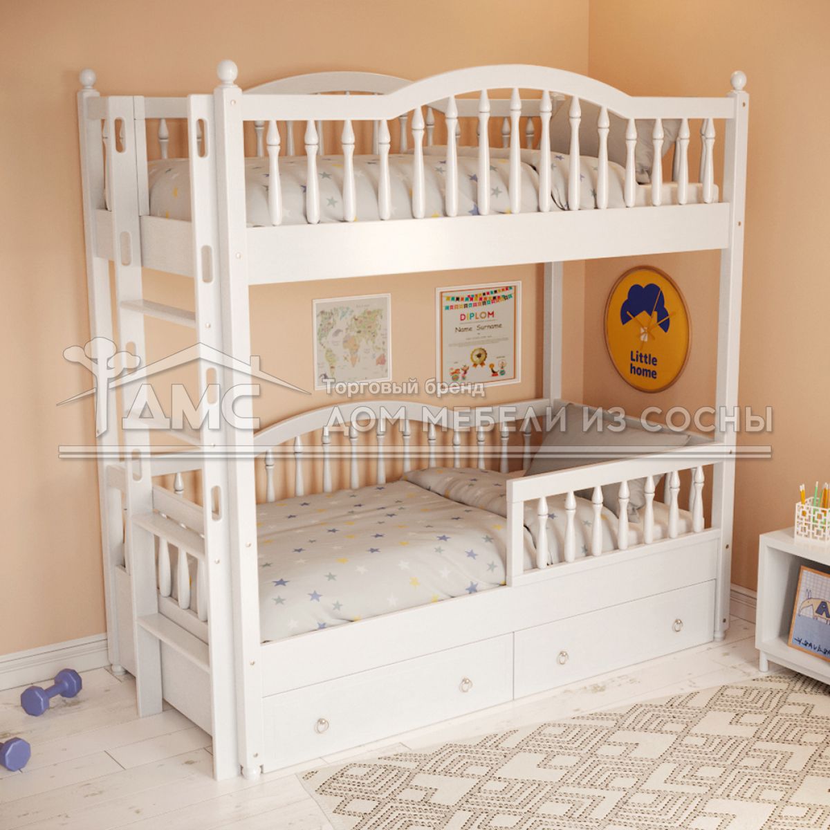 Эта двухъярусная кровать с удобной и прочной лестницей станет отличным выбором для экономии пространства в комнате. Вместительные выдвижные ящики в нижней части кровати подойдут для хранения игрушек, постельного белья и других вещей.