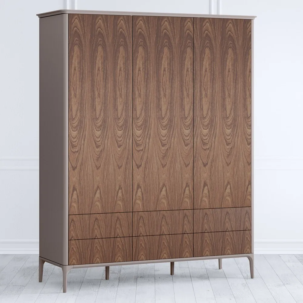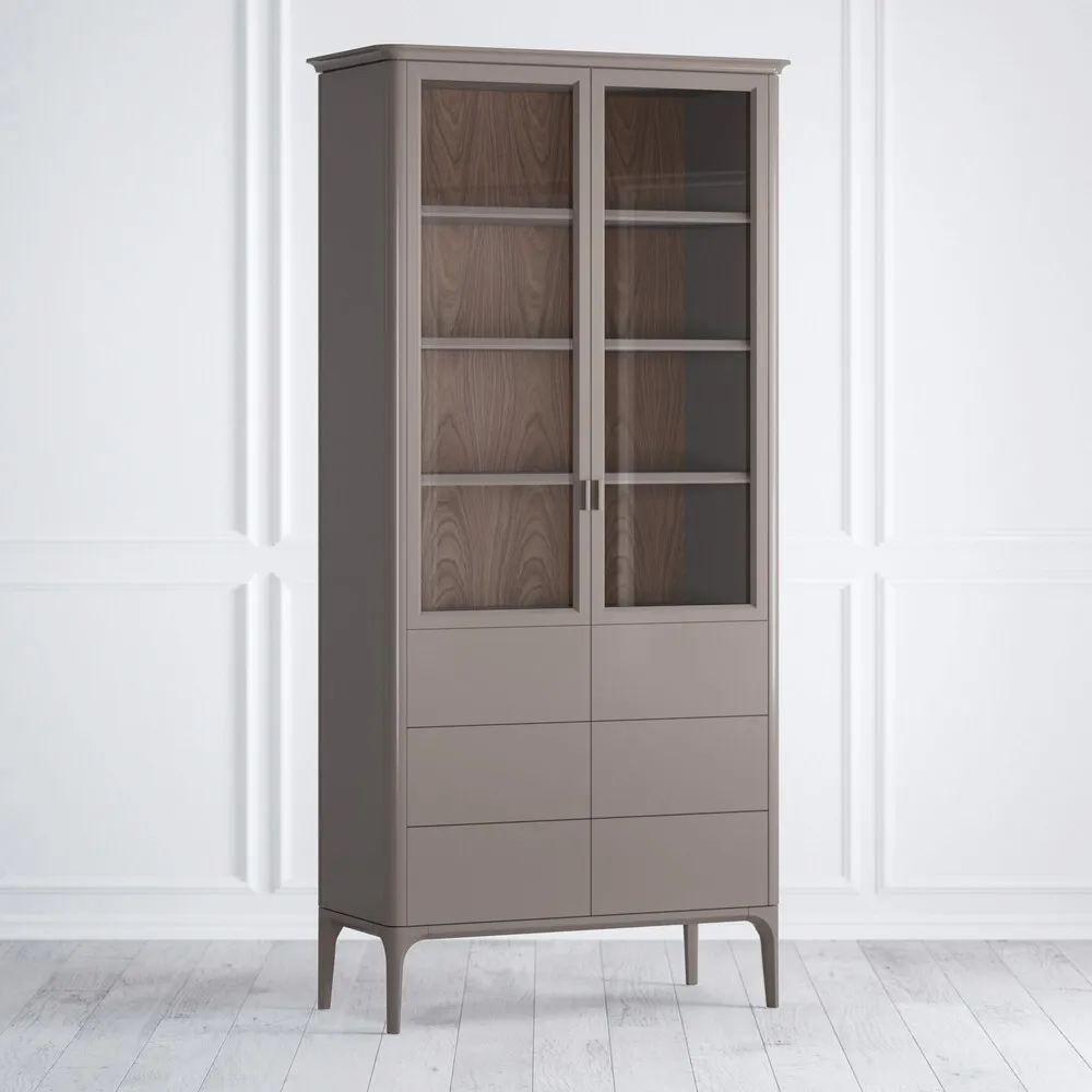 Мебель из коллекции Примо Боско предназначена для спален, кабинетов, гостиных, включает стеллажи, одежные шкафы с 2, 3 и 4 дверями, стеклянные витрины, столы разных типов (журнальные, письменные, обеденные), прикроватные тумбы и комоды. Предметы коллекции предлагаются в двух цветах, корпуса выкрашены в серый, фасады – в цвет «шпон ореха» с сохранением текстуры дерева.