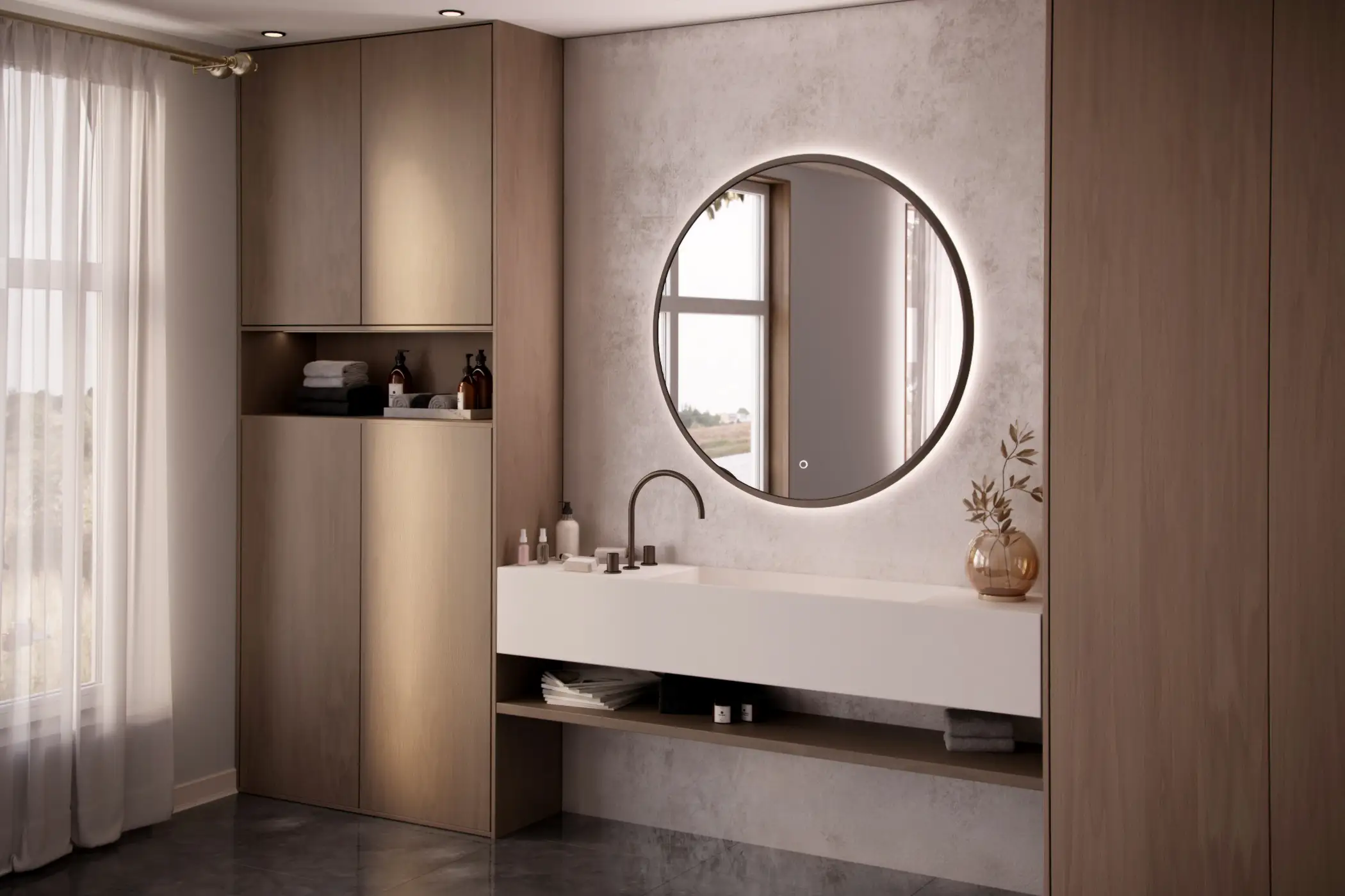 Фасады сделаны без ручек, двери и ящики открываются при нажатии (система TIP-ON). В базовом варианте ящики идут с шариковыми направляющими, дополнительно можно установить доводчики скрытого монтажа с полным выдвижением ящика.