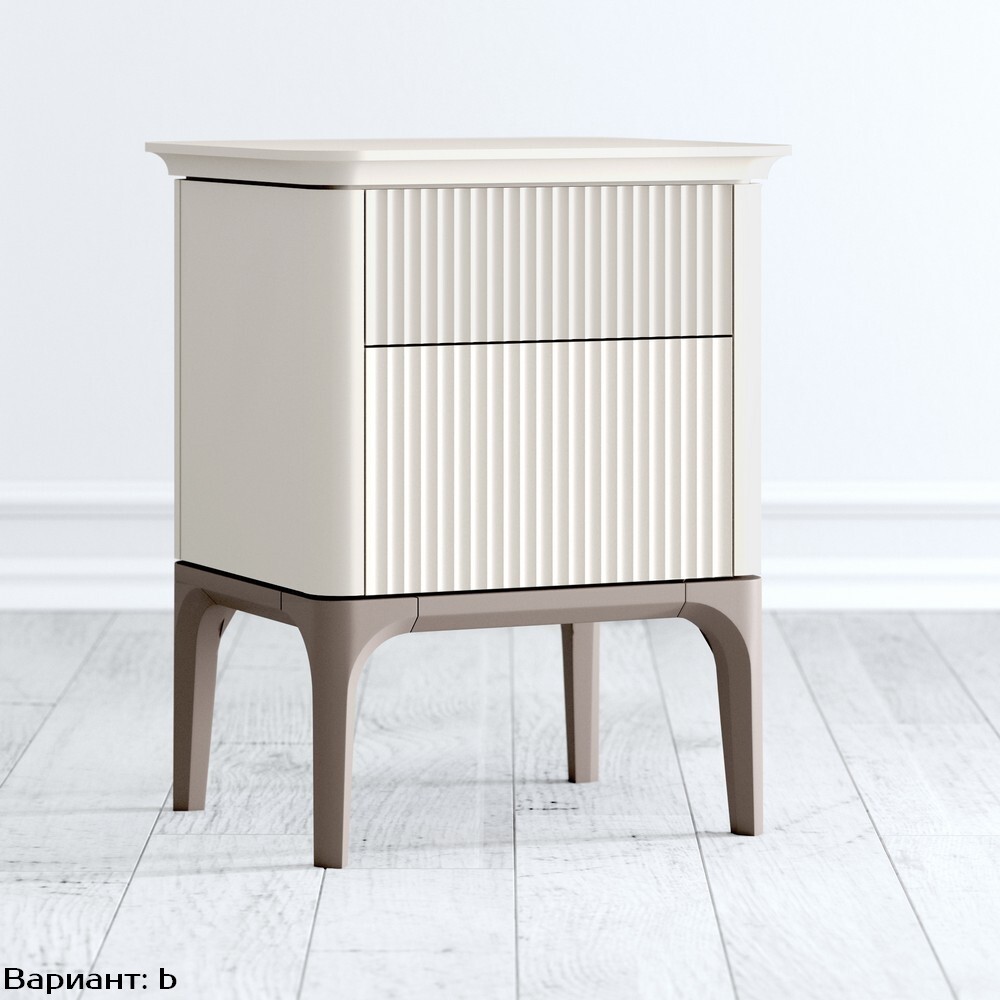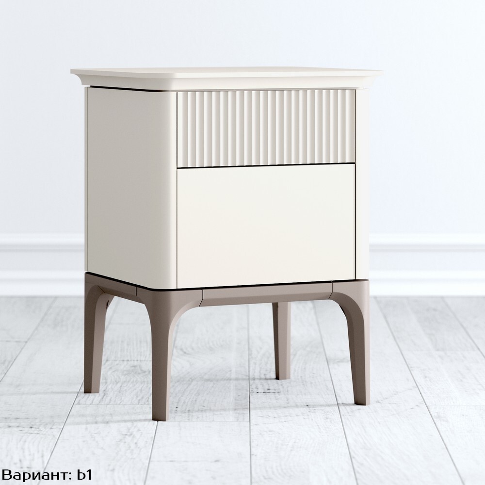 Верхняя часть окрашена в цвет светлый беж (K07 - ближайший RAL 9001), низ в коричневый цвет (K09 - ncs 4005 y50r). Имеет систему открывания TIP-ON, открывание ящиков простым нажатием на фасад.