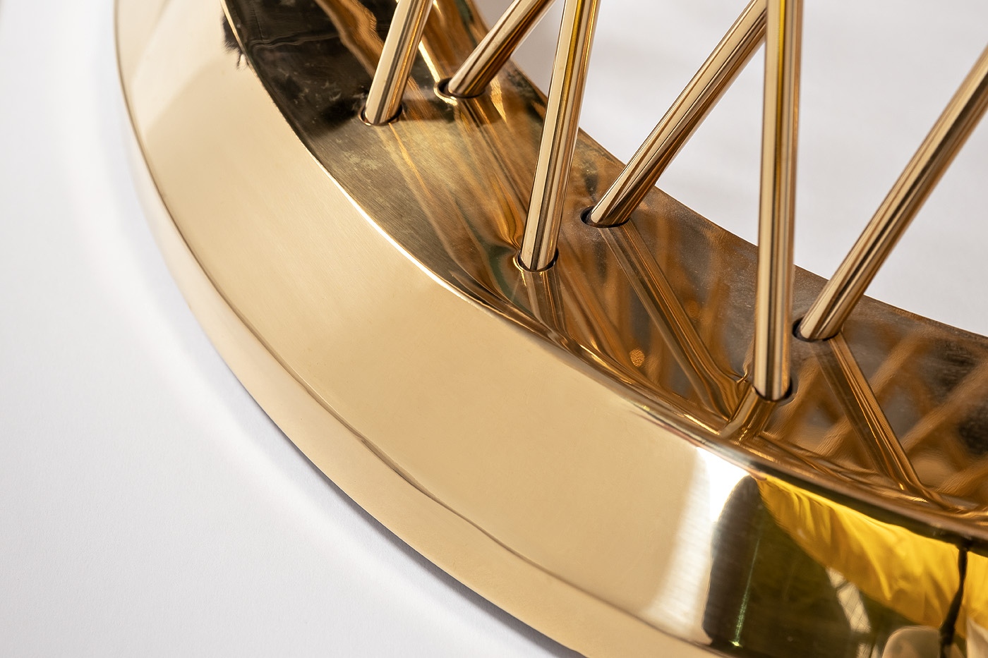 Стильный круглый обеденный стол сочетает в себе благородство мраморной столешницы и роскошь основы из позолоченного металла. За счет такого сочетания модель выглядит элегантно и добавляет шика обстановке. Обеденный стол из искусственного мрамора будет эфф...