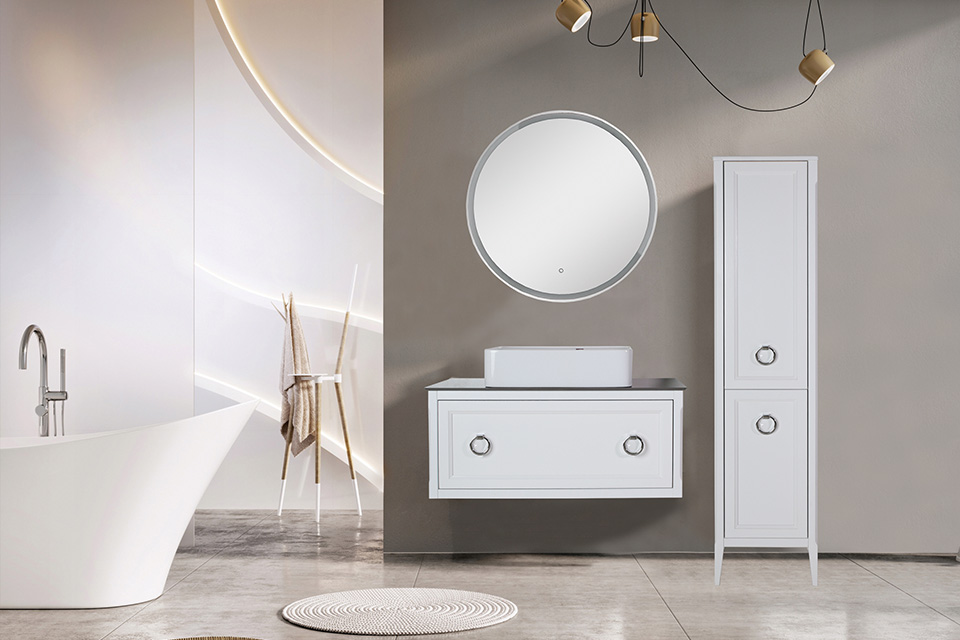 - Удобство использования: выдвижные ящики полного выдвижения с доводчиками обеспечивают плавное и бесшумное открывание и закрывание. Это особенно важно в условиях ограниченного пространства ванной комнаты.