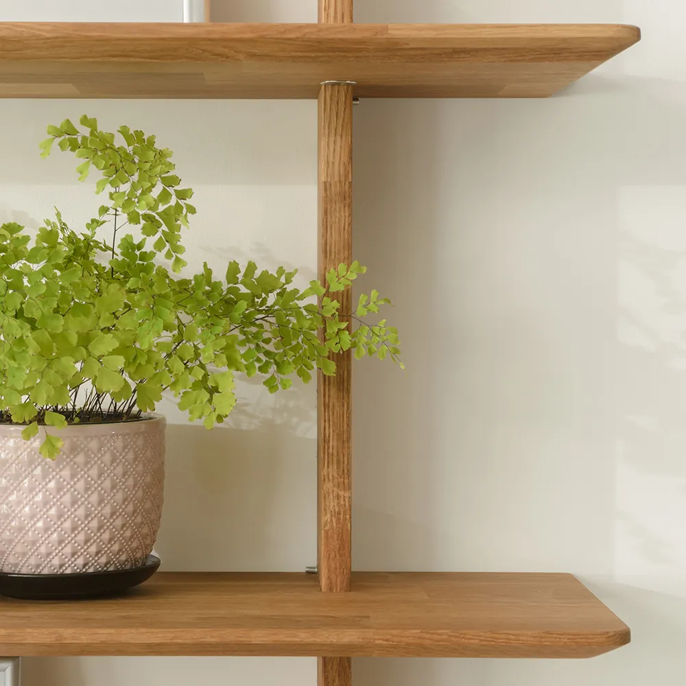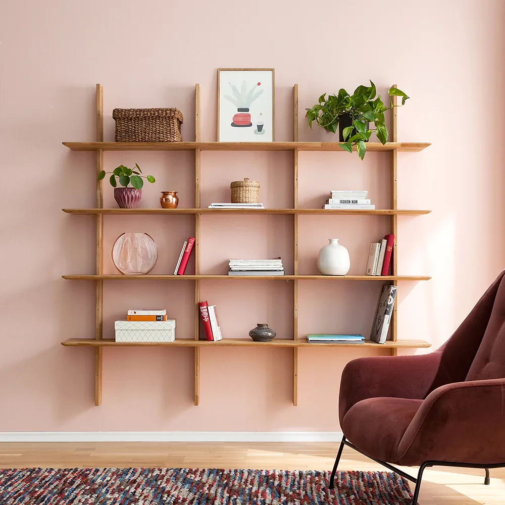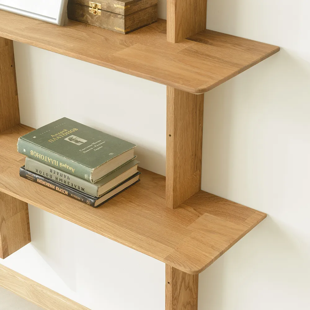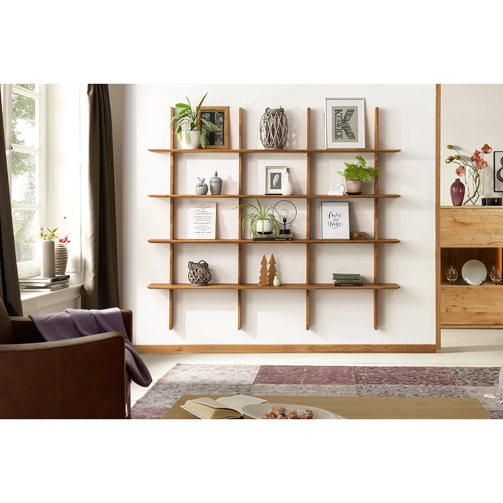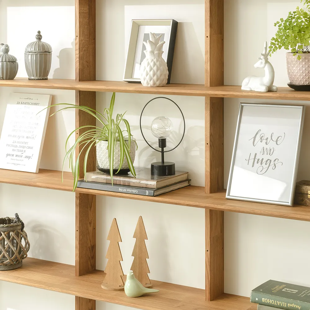 Настенный стеллаж изготавливается из натурального долговечного материала – массива дуба. Дерево имеет красивую текстуру и приятно на ощупь. У стеллажа три секции с двенадцатью полками. Он поставляется в разобранном виде, в одной упаковке. Размеры стеллажа 1968х250х1762 мм, вес 44 кг. Гарантийный срок на изделие – 1 год.