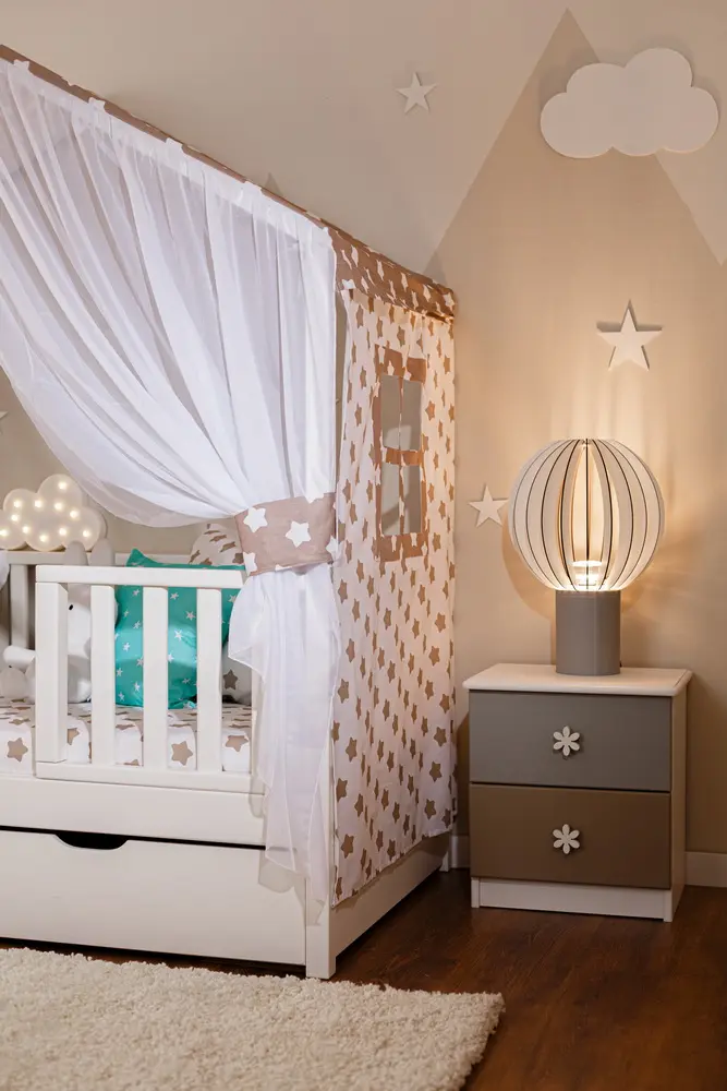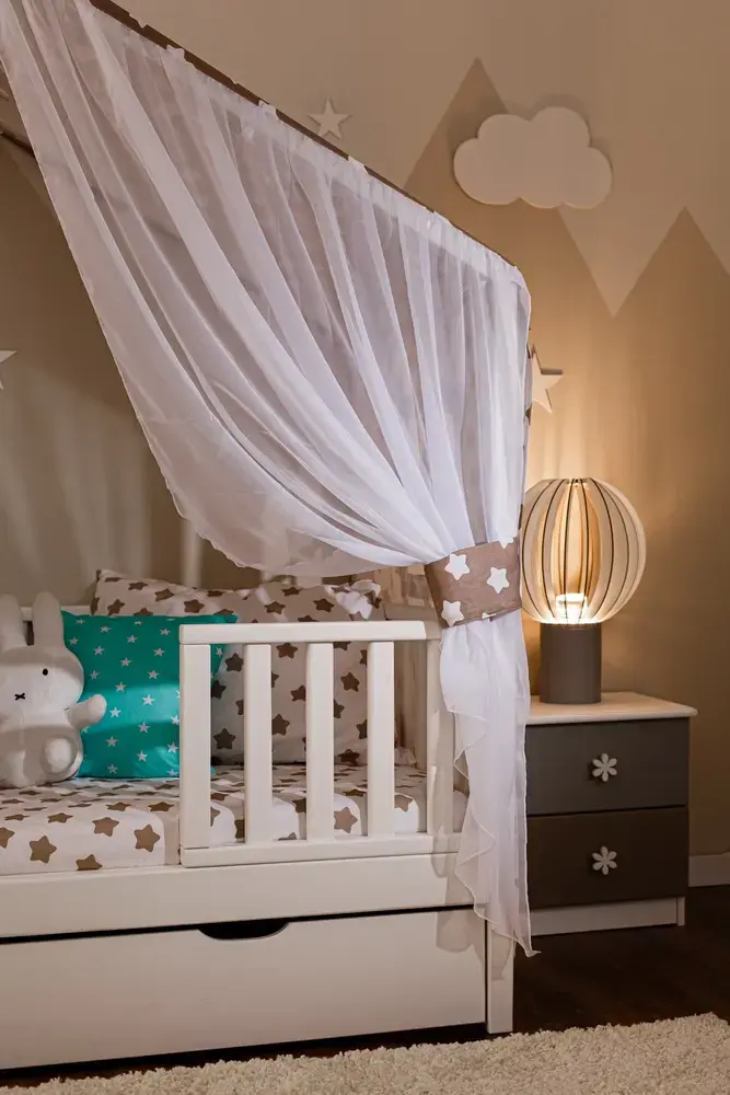 Все изделия выполнены из экологически безопасного материала — массива сосны — и покрыты нетоксичным лаком. Возможные цветовые решения указаны в карточке товара. В базовую комплектацию входят деревянный настил и бортики, а ящики и накидка на кровать заказываются отдельно.