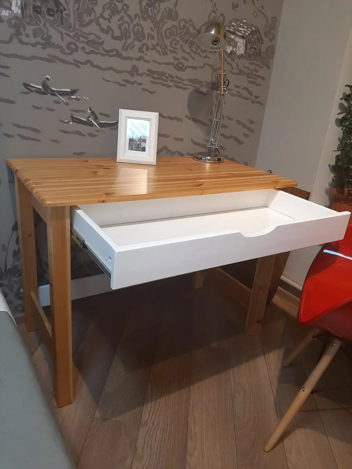 Ищете идеальный стол для учёбы или работы? Тогда вам понравится наш стол письменный ТК №3! Он выполнен из массива сосны, что делает его прочным и долговечным. Дно ящика изготовлено из ДВП белого цвета.