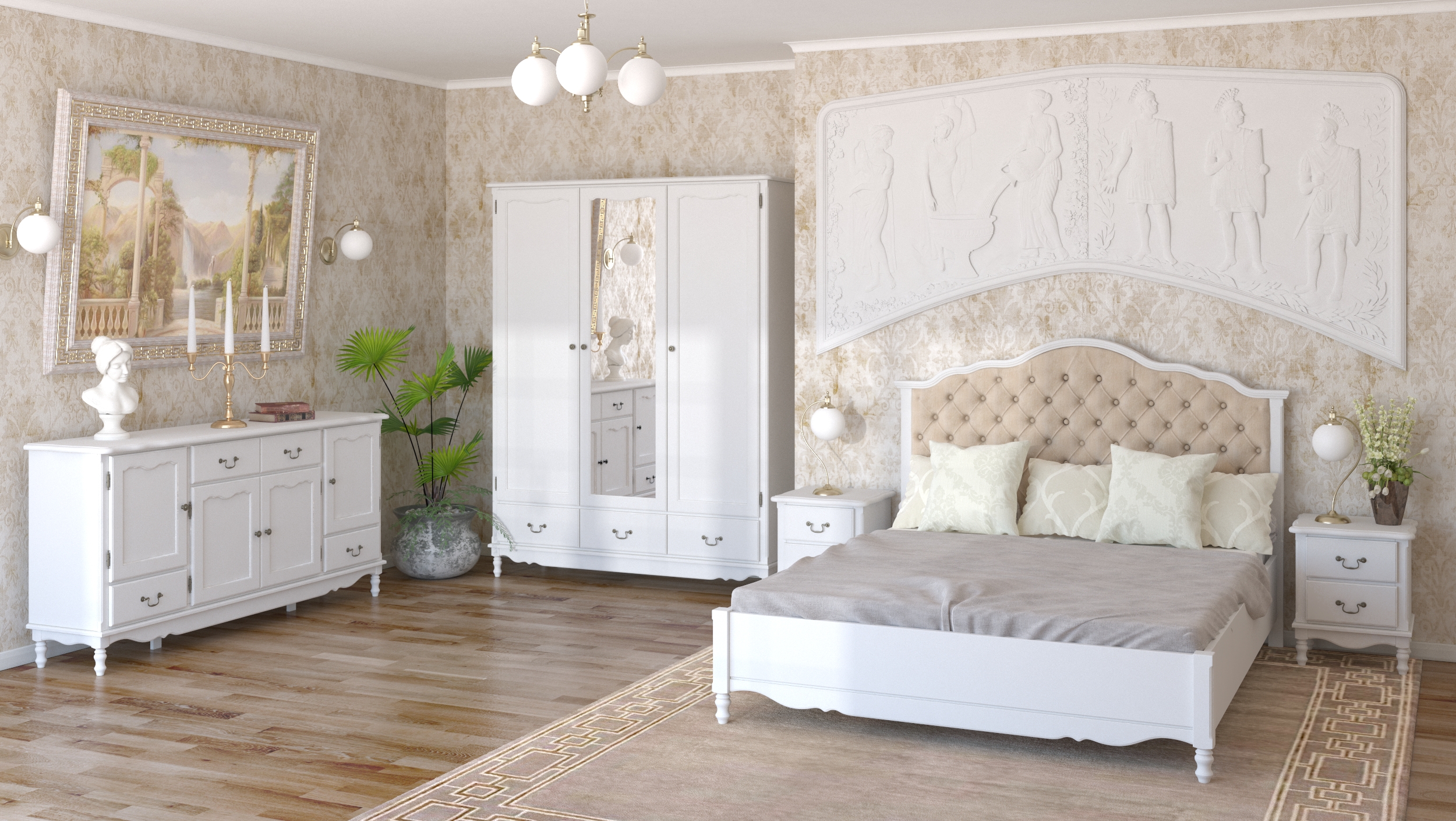 Предметы коллекции выполняются в отделках «укрывистый белый воск» и «слоновая кость». Ящики оснащены направляющими скрытого монтажа с доводчиками.