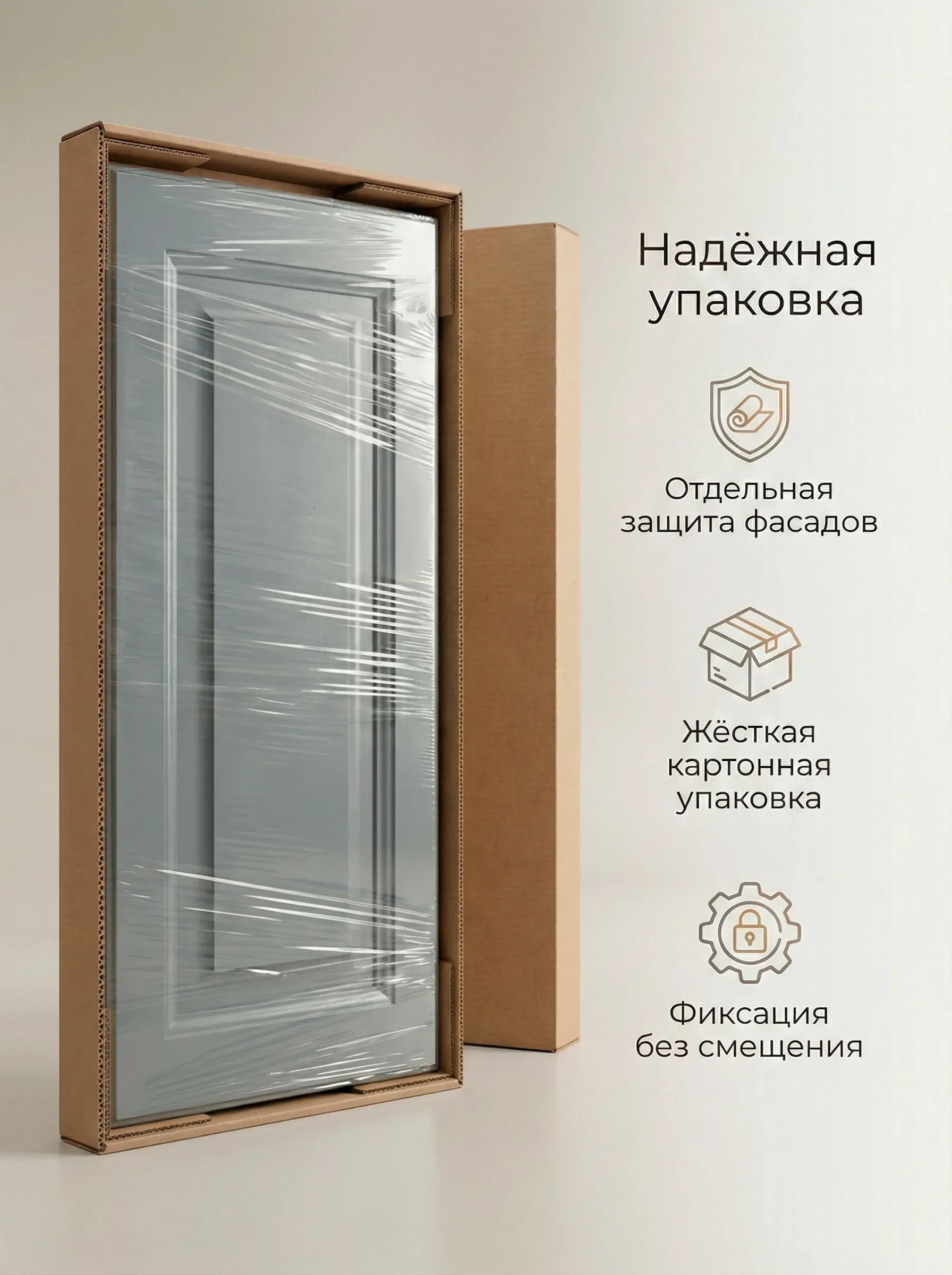 Отделка УФ-лаком от крупного производителя The Sherwin-Williams Company (всё, кроме фасадов) и итальянским НЦ-лаком (фасады) придаёт шкафу элегантный и современный вид. В комплекте идут стекло и деревянные ручки-кнопки.