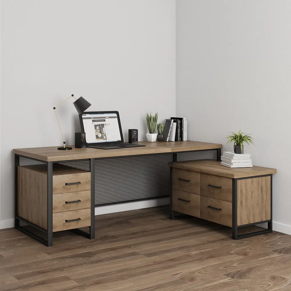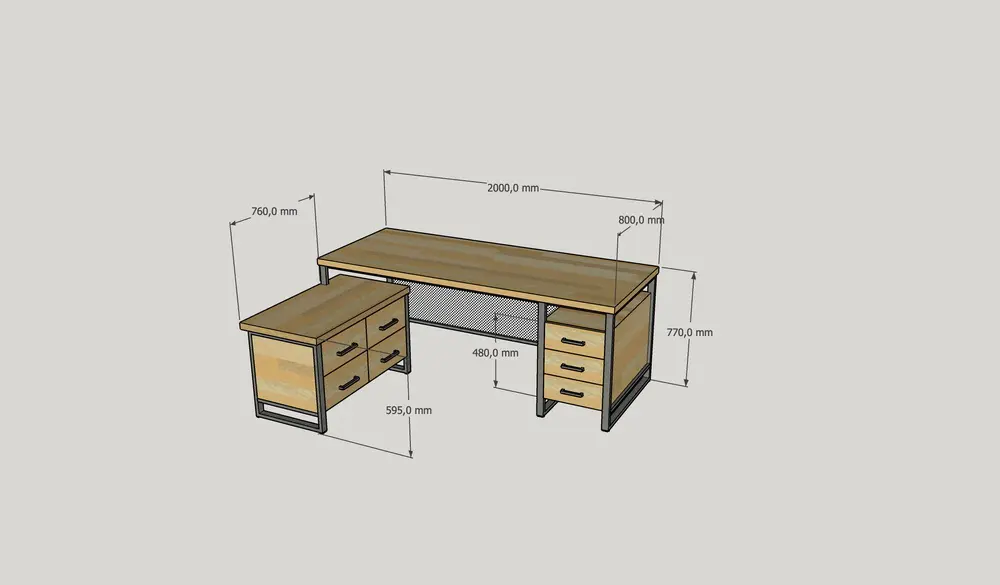 Стол с ящиками и полкой лофт. Письменный рабочий стол с двумя тумбами в стиле ЛОФТ 07-08. Каркас выполнен из металлического профиля и окрашен в черный цвет. Столешница выполнена из массива сосны. На заказ, возможно изготовление всех деревянных элементов-из массива ясеня, дуба или бука, покрытые маслом, бесцветным лаком или эмалями. А металлический каркас изделия может быть выкрашен в любой цвет по RAL. Подробности и более точную цену можно узнать у наших консультантов.