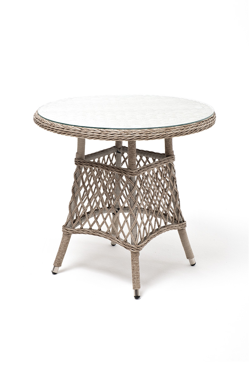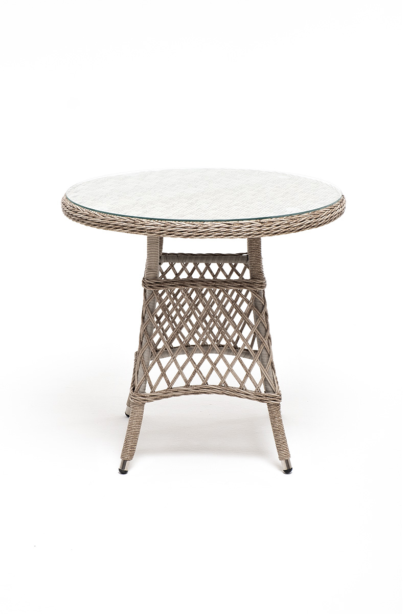 Комплект "Эспреззо-80 L" можно использовать в качестве обеденной группы на 2 персоны или как кофейный комплект на балконе или террасе. В плетеный комплект входит круглый стол «Эспреззо» диаметром 80 см с ударопрочной стеклянной столешницей и 2 кресла коллекции «Латтини» 550×680×840 мм. Набор представлен в бежевом цвете. "Эспреззо" плетеный круглый стол, диаметр 80 см, цвет бежевый 1шт. 800Х800Х750, "Латтини" плетеное кресло из искусственного ротанга, цвет бежевый 2шт. 550Х660Х850,