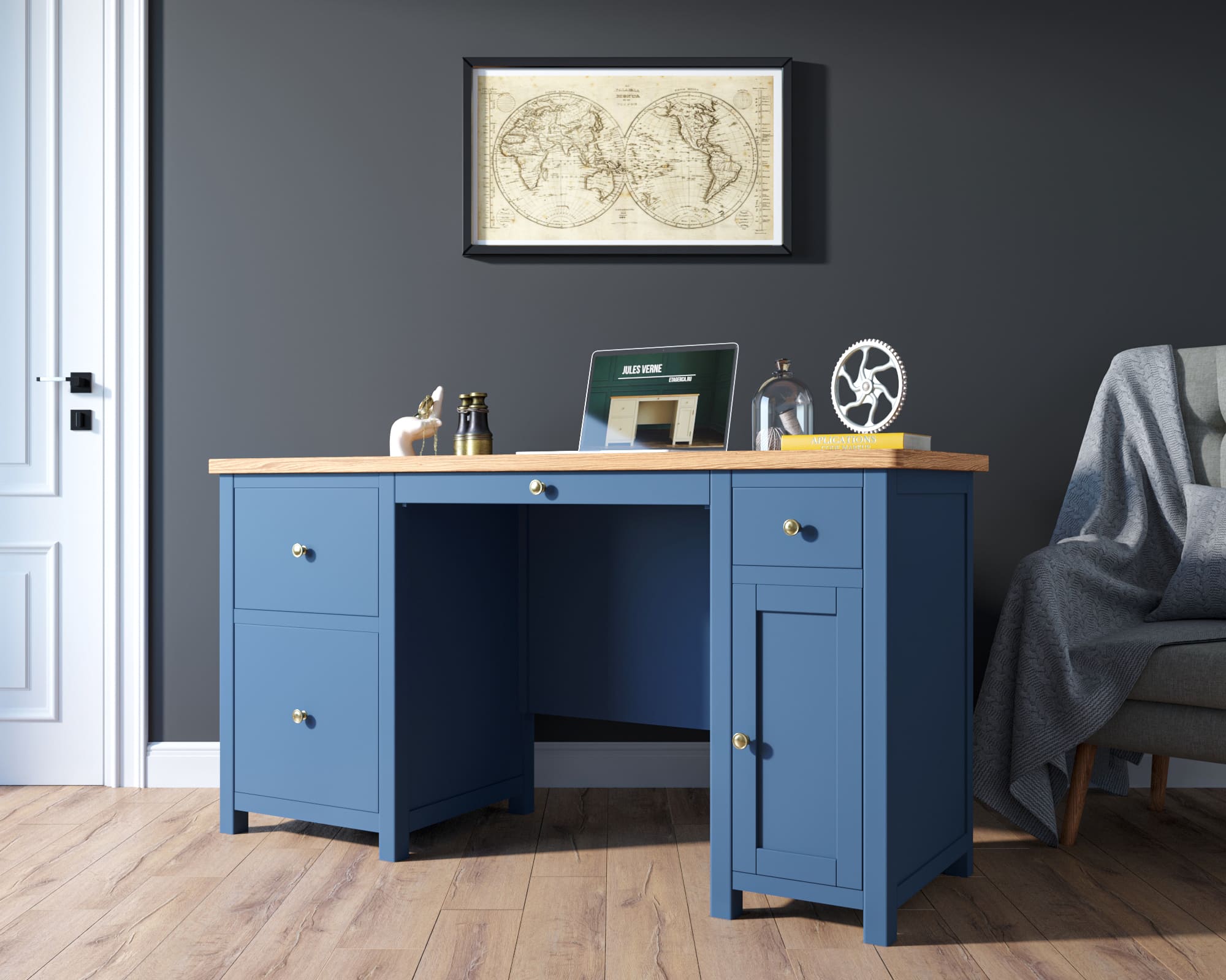 Основательный и практичный рабочий стол "Jules Verne" сочетает в себе все эти характеристики.