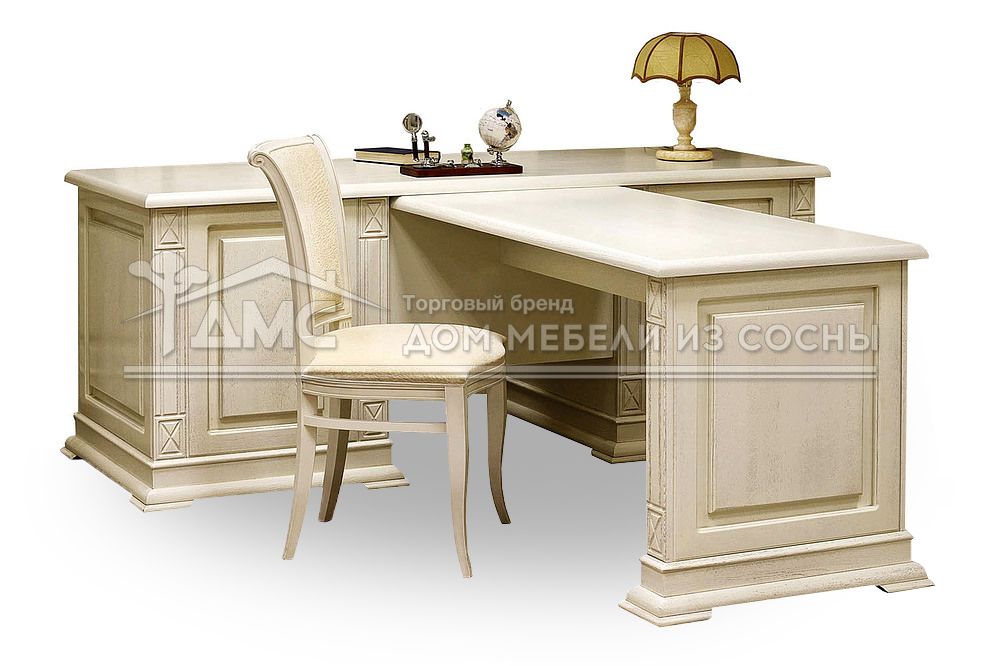 Этот письменный стол отличается внушительными габаритами, которые делают его идеальным выбором для просторной комнаты с классическим интерьером. Благодаря своей конструкции, он обеспечивает достаточно места для работы и хранения документов, книг и других необходимых предметов.