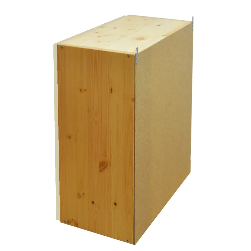 Шкаф изготовлен из высококачественного мебельного щита толщиной 20 мм, что обеспечивает его прочность и долговечность. Задняя стенка выполнена из оргалита, что придаёт шкафу дополнительную устойчивость. Фасады изготовлены из бессучкового массива, прошедшего ручной отбор сырья. Это гарантирует высокое качество и эстетичный внешний вид шкафа.