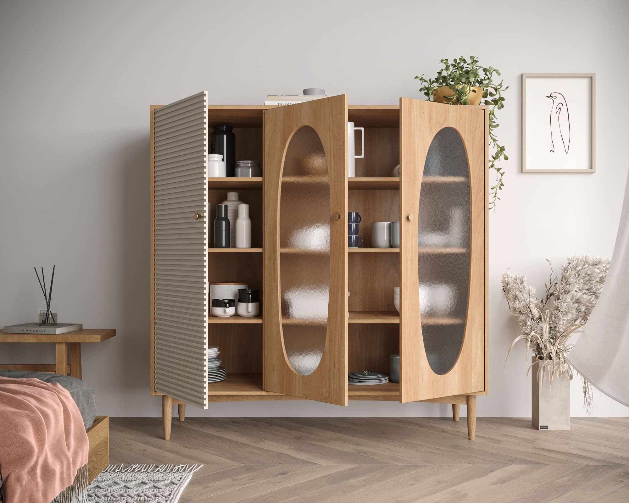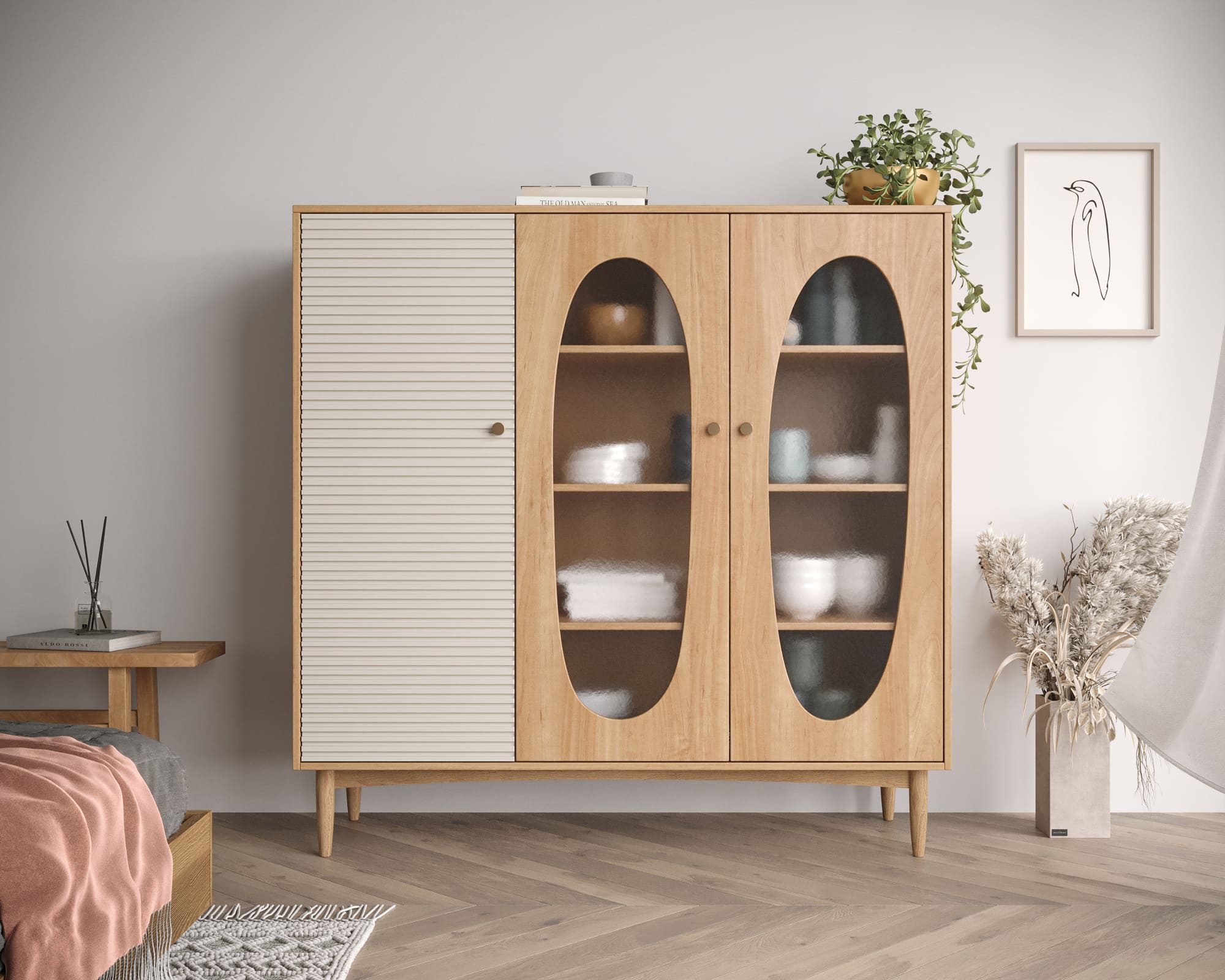 Высокие ножки из массива ясеня придают шкафу легкость и воздушность.